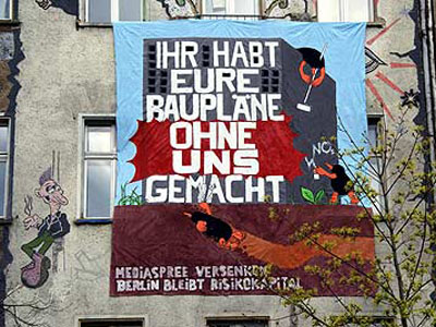 Friedrichshain-Kreuzberg'de, Spree Nehri kıyısındaki "BMW-Guggenheim Lab" denilen yapının inşaatına önümüzdeki haftalarda başlanacak, 23 Mayıs'ta ise açılış yapılması planlanıyor. "Lab" denilen bu yapı, muhafazakâr BMW şirketinin kötü bir imaj tasarımı; mahallede oturanlar içinse kiraların daha da artması, arsanın fiilen özelleştirilmesi anlamına geliyor ve elbette orada yaşayanların hiçbir katılımı olmadan planlanıyor.