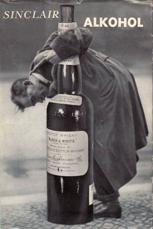 Upton Sinclair, Alkohol, 1932. Viski markası Black & White’ın adının kitap kapağından kaldırılması talebiyle Malik yayınevini mahkemeye vermesi üzerine ikinci baskıda Heartfield etiketin üzerini mahkeme kararıyla kaplar.