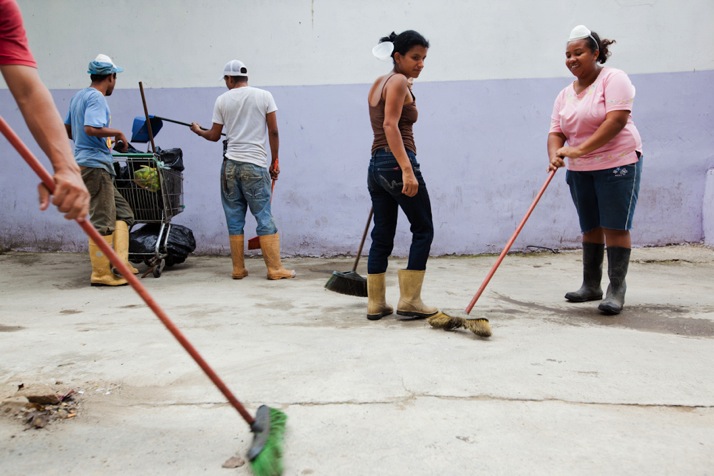 Bilgisayarlar, fotokopi makineleri, yazı masaları, toplantı odaları için niyet edilen mahallerde şimdi evler, sokaklar, dükkânlar ve kiliseler var. Yer yer monte edilmiş olan ayna-camların yanı başında, Latin Amerika evsizlerinin barınaklarına özgü, derzlerindeki harç etrafa bulaşmış tuğla ve briketler var. Asansör yok. Bu demek ki, binanın kimi sakinleri 28 kat merdiven inip çıkmak zorunda. 47 katlı kulenin üst katları bu yüzden işgal edilmemiş. Merdivenlerin çoğunun korkuluğu yok, varsa bile derme çatma. Bu durumun yarattığı tehlike, şehrin merkezinde barınacak bir yer bulmuş olanların göze aldığı bir risk olarak görülüyor.