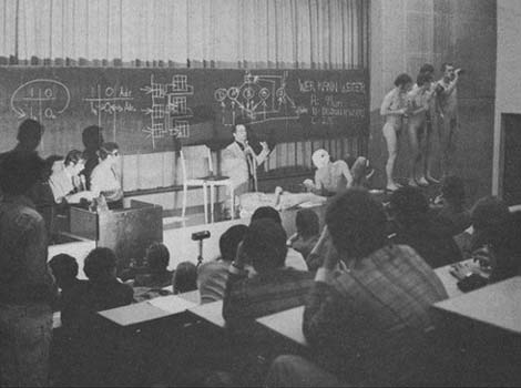 Viyana Aksiyonistleri Oswald Weiner, Otto Mühl, Günter Brus. Kunst und Revolution/Sanat ve Devrim, Viyana Üniversitesi, 6 Temmuz 1968. Foto: Siegfried Klein.