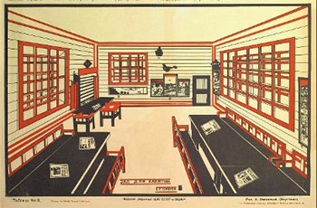 Devrim’den sonra, halkın yüzde 70'i okuma-yazma bilmediğinden, sanat üretimi ülkenin dört bir yanındaki işçi ve köylüleri bilgilendirmeye ve eğitmeye hizmet etti. Bu amaçla, fotomontaj tekniğiyle veya parlak renkli basit geometrik formlarla üretilen kitap tasarımları, sinema ve siyasi propaganda afişleri kullanıldı. Örneğin, Anton Lavinski'nin Okuma Odalı Kulübe için yaptığı eskizde (1925) okuma sınıfları için tasarlanan bu kulübeye, iki hoparlör, meteorolojik aletler, bir saat, bir rüzgâr direği, dünya ülkelerinin bir göstergesi, bir anten ve yoldan geçen köylülerin merakını uyandıran bir bayrağın eklendiği görülür. Buradaki baskın renk, hem kulübeyi görünür kılan, hem de devrimci amacını vurgulayarak uzaktan ayırt edilen kırmızıdır. Bir sinema perdesi, Lenin'in bir portresi, bir vitrin, yenilikler için vitrinli bir kütüphane rafı, bir kitaplık, ders kitapları, defterler, kitap dolabı, bir yasal referans masası, yazı aletleri olan bir masa, vitrinler, çizelgeler ve hoparlör gibi tasarlanmış bileşenleriyle iç mekân da, eğitim ve propaganda açısından önem taşır.[26]