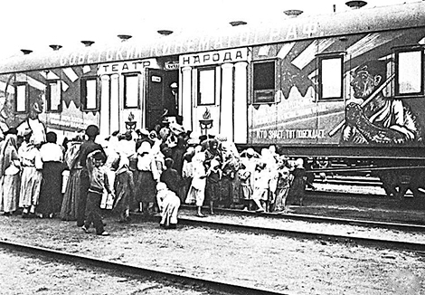 Güneşin Fatihleri filminde V.İ. Lenin No. 1 adlı ajit-trenin sinema vagonu, 1920